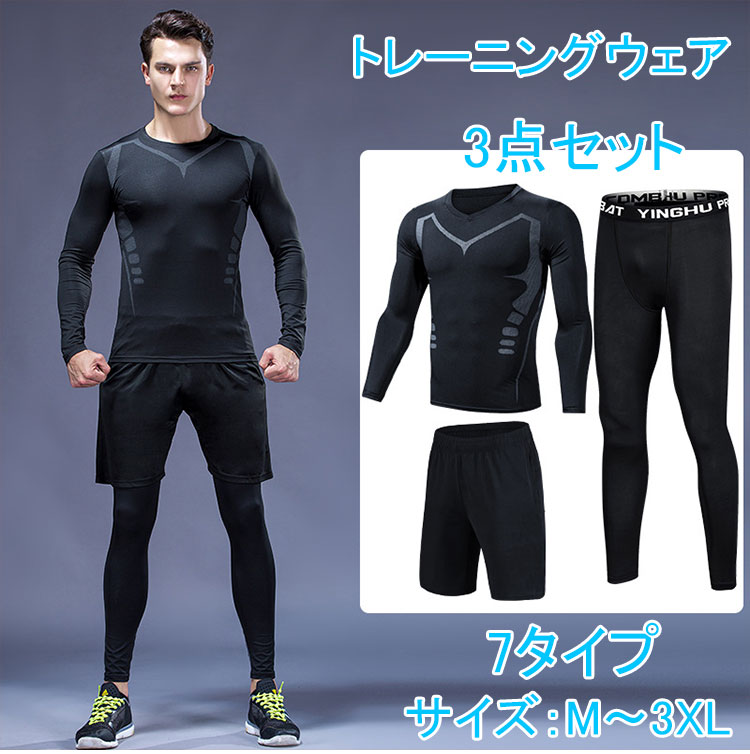 コンプレッションウェア 男性 男の人 3点セット 長袖 ショートパンツ レギンス クール アンダーウェア トレーニングウェア ゴルフ 野球 吸汗速乾 野球部 メンズ 野球用品 スワロースポ ランニング