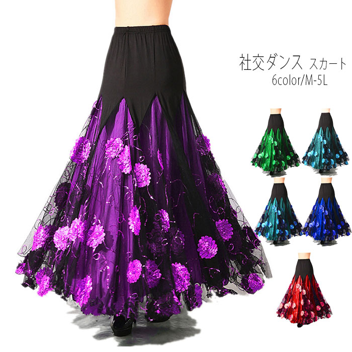 社交ダンス スカート 赤 紫 青 緑