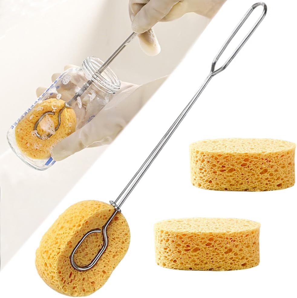 ボトルブラシ 取り外せるスポンジ 交換スポンジ付き スポンジブラシ 水筒洗い スポンジボトルブラシ スリムボトル対応 ポット洗い コップ洗いブラシ ロングハンドル スポンジ3個入 ガラス ホ 取替え用