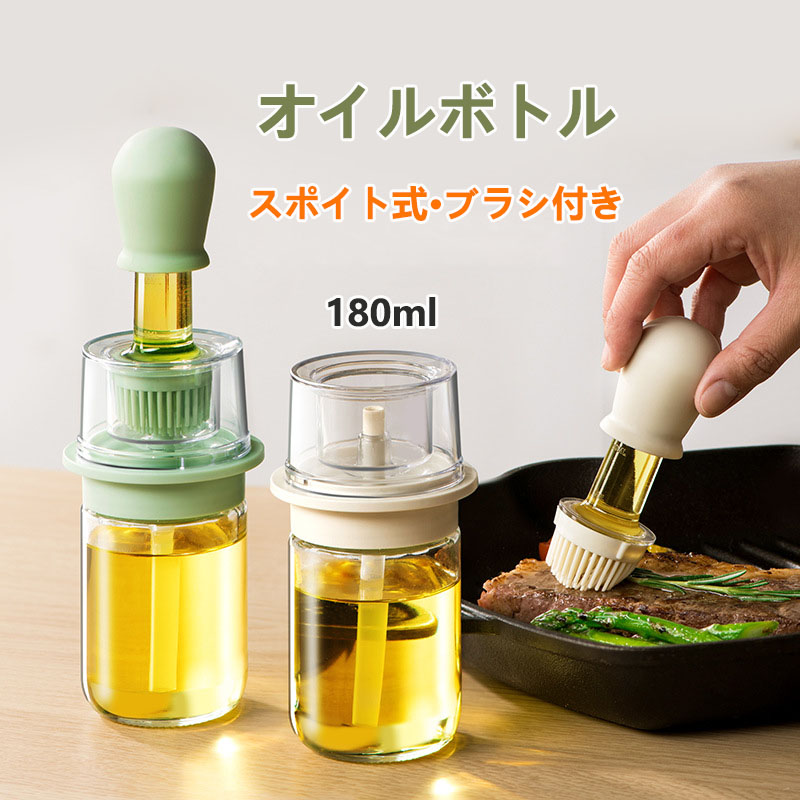 シリコンブラシ付きオイルボトル 耐熱ガラス オイル差し スポイト オイルブラシ 油引き オイルポット キッチンツール 料理用 醤油瓶 油 調味料入れバーベキュー ホットプレート 鍋 グリル