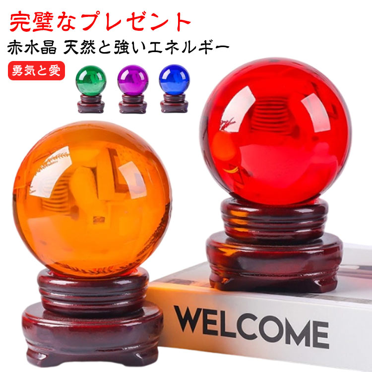 風水 水晶玉 自然赤いクリスタルボール 風水 デスクトップの装飾 置物 開運 金運 パワーストーン 丸玉 赤水晶 赤い置物 誕生日プレゼント 父の日 母の日 水晶ボール