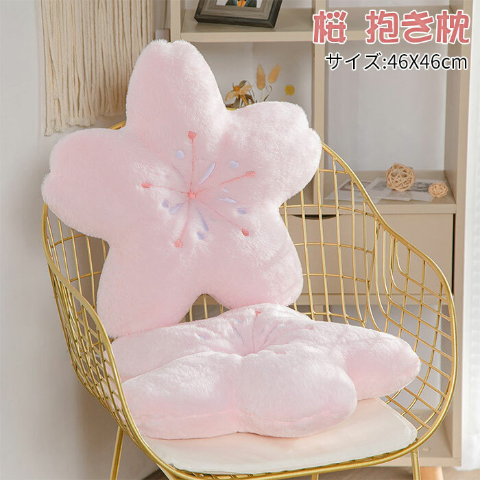 クッション さくら 桜 抱き枕 お昼寝枕 座布団 背当て 枕 柔らかい かわいい ソファ 車 ふんわり 座る 疲れ インテリア ギフト プレゼント 46cm 部屋飾り
