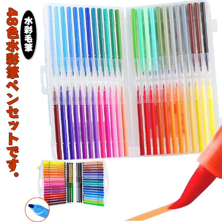 水彩ペン 水彩筆ペン 水彩 48色 水彩毛筆 色塗り カラー筆ペン 絵筆 水性マーカー カラーペン 筆ペン 水性 お絵かきセット アートマーカー 水彩画 絵手紙 落書き 塗り絵