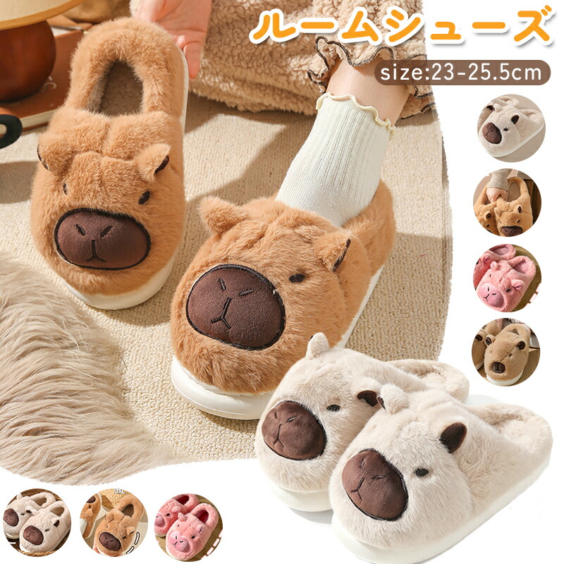 ルームシューズ レディース メンズ カピバラ スリッパ 2タイプ かかと付き なし おしゃれ 男女兼用 お手洗い お揃い 動物 来客用 室内 部屋履き 暖か 冷え防止 可愛い 大き 滑り止め