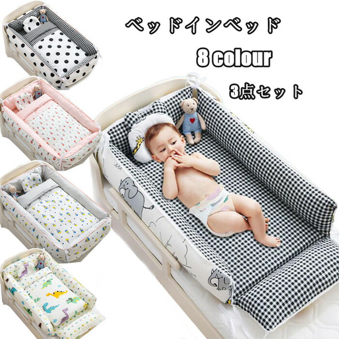 ベビーベッド ベッドインベッド 添い寝ベッド ベビーベッドガード 3点セット 布団 まくら寝返り防止 洗濯可能 オムツ換え 枕付き 転落防止 赤ちゃん 癒しアイテム 撮影 持ち運び