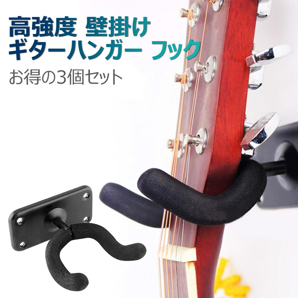 高強度 壁掛け ギターハンガー フック お得の3個セット ギター保管 壁飾り お得のセット壁掛け ネジ 取り付けスクリュー付き ギター掛け