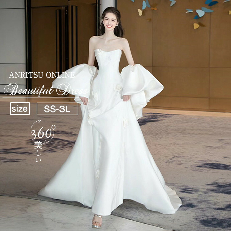 ウエディングドレス 前撮り 後撮り フォトウエディング 披露宴 結婚式 演奏会 発表会 シンプル パーティードレス カジュアル ビーチフォト