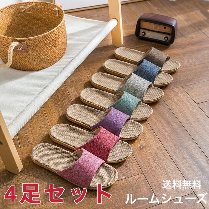 4足セット スリッパ セット 麻 春 夏 メンズ レディース おしゃれ 室内 ルームシューズ まとめ買い 洗える ベランダ サンダル 抗菌 蒸れない 小さい 大きい サイズ オールシーズン