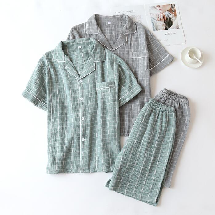 メンズパジャマ 綿100% ルームウェア 男性 コットンパジャマ 二重ガーゼ メンズ 部屋着 ナイトウェア 半袖パジャマ チェック柄 パジャマ 半袖+半ズボンメンズルームウェア 着心地いい