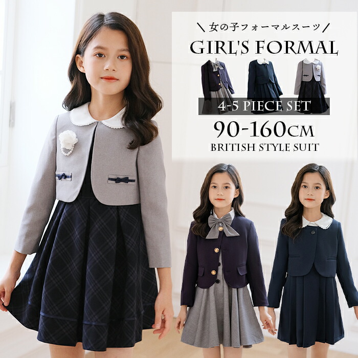 11%OFFクーポン 子供 フォーマル スーツ 女の子 4点セット ジャケット ワンピース シャツ リボン 3タイプ フォーマルスーツ キッズ スーツセット ブラウス ボレロ ミモレ丈 ジャンパ 長袖