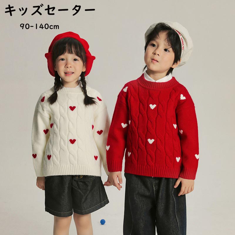 ニット セーター キッズ ハート柄 子供服 男の子 女の子 スクールセーター 洗える ベビー服 トップス 長袖 おしゃれ 可愛い ジュニア 赤ちゃん 春秋冬 暖かい 誕生日 プレゼント 入 クリスマス