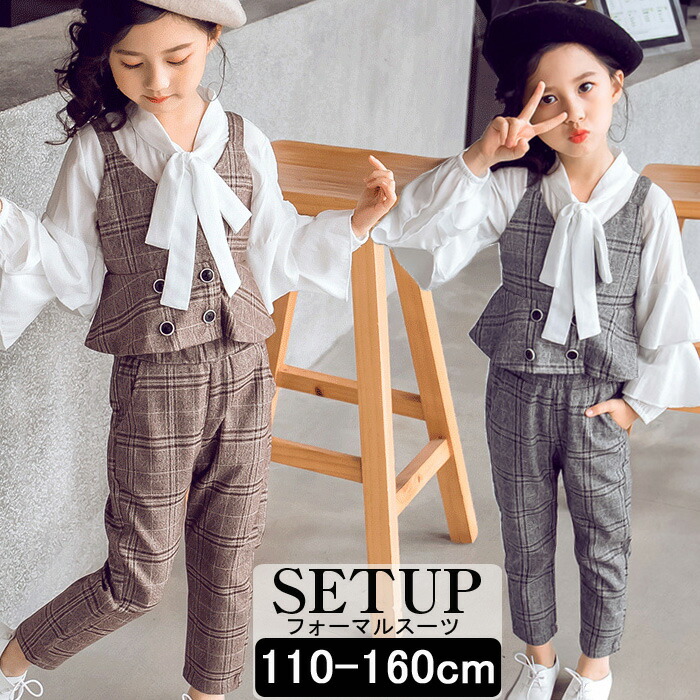 入学式 子供服 スーツ 女の子 フォーマル キッズ 卒園式 七五三 長袖 白ブラウス チェック柄 3点セット 子ども服 おしゃれ カジュアル 結 キッズジュニア