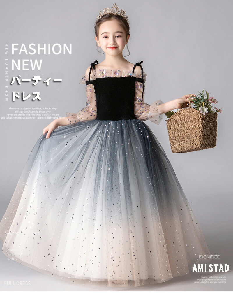 子供ドレス スパンコール ピアノ発表会 ドレス おしゃれ 女の子 ロング パーティードレス ジュニア ワンピース キッズ フォーマル 子供 半袖 結婚式 子ども 発表会