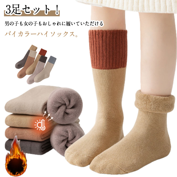 3足セット 靴下 子供 ハイソックス 防寒 暖かい 秋冬 厚手 こども キッズ 女の子 男の子 あったか靴下 長い靴下 冬用 ソックス あったか 秋 冬 裏起毛 無地 極暖 あったかい