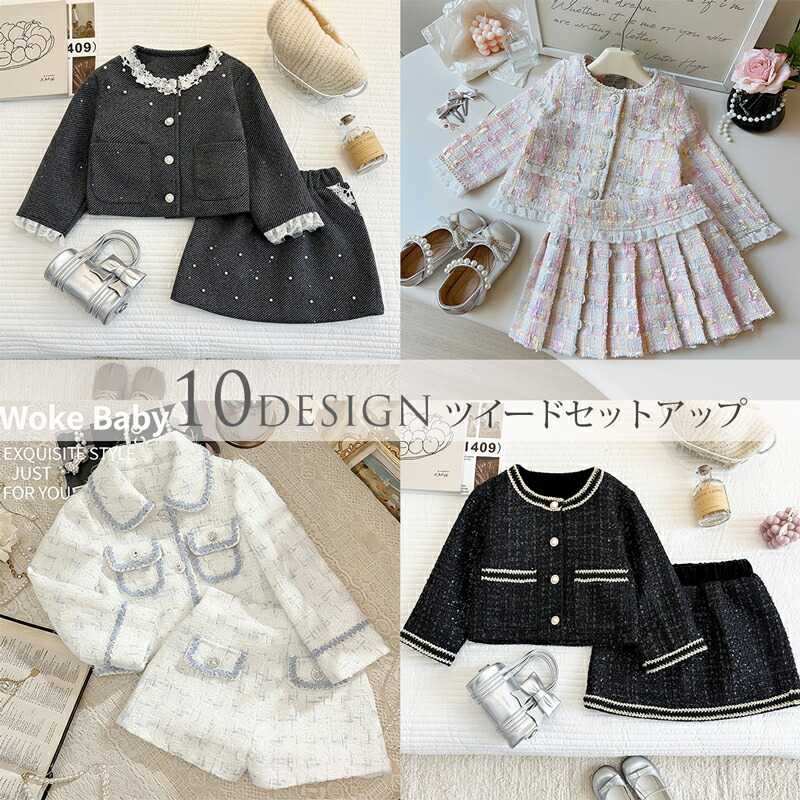 卒園式 入学式 女の子スーツ 10タイプ選べる フォーマル ツイードセットアップ ジャケット&プリーツスカート キッズ スーツ レース リボン 発表会 結婚式 入園式 こども 卒業式 卒園 1 子供服