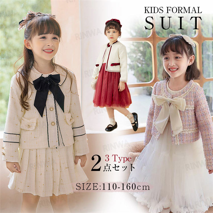 子供服 フォーマル 女の子 入学式 スーツ 卒園式 卒園 2点セット ジャケット スカート コート ワンピース キッズ 結婚式 七五三 撮影 リボン 子ども 入 発表会