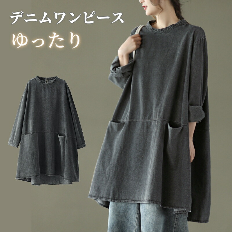 チュニック ワンピース デニム チュニックワンピース レディース デニムワンピース 春 秋 冬 長袖 ワンピ 体型カバー 春秋ワンピース 膝丈 コーデ きれいめ 大き ゆったり