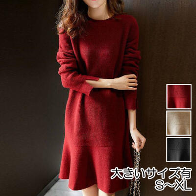 ロングワンピース ニット プルオーバー 長袖 秋冬 無地