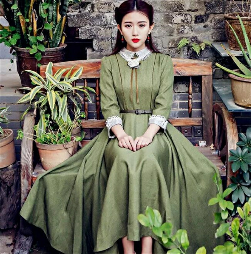 オリジナルデザイン レトロ調 森ガール レイヤード風 カントリー調のワンピース スカート丈はひざ下程度 レトロ感あふれるカントリー風なワンピースです 長袖