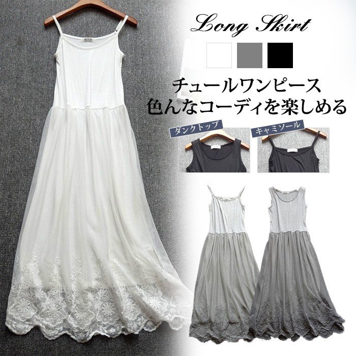 キャミワンピ ロングワンピース ペチコート ワンピース レディース キャミソール 部屋着 インナー 夏 春 秋 冬 チュール レース タンクトップ ロングペチワンピース 可愛い 20 刺繍