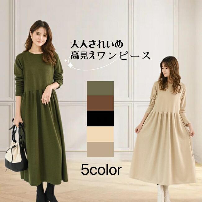 ワンピース 秋冬 レディース きれいめ Aライン ロングワンピース マキシ丈 ロング フレア 大人 上品 ミディアム丈 ミモレ丈 エレガント カジュアル ワンピ 大きいサイズ フォーマル 結婚式 長袖