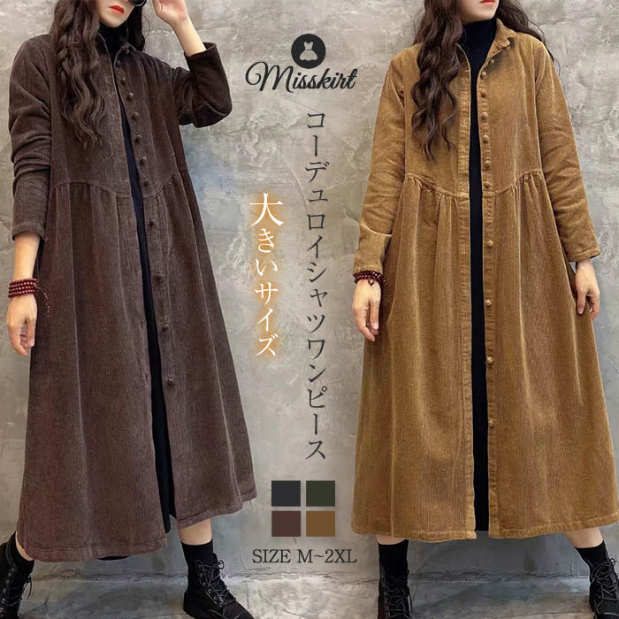 【送料無料◎宅配便発送】コーデュロイシャツワンピース コート シャツワンピース ロングワンピース ワンピース コーデュロイ 秋 冬