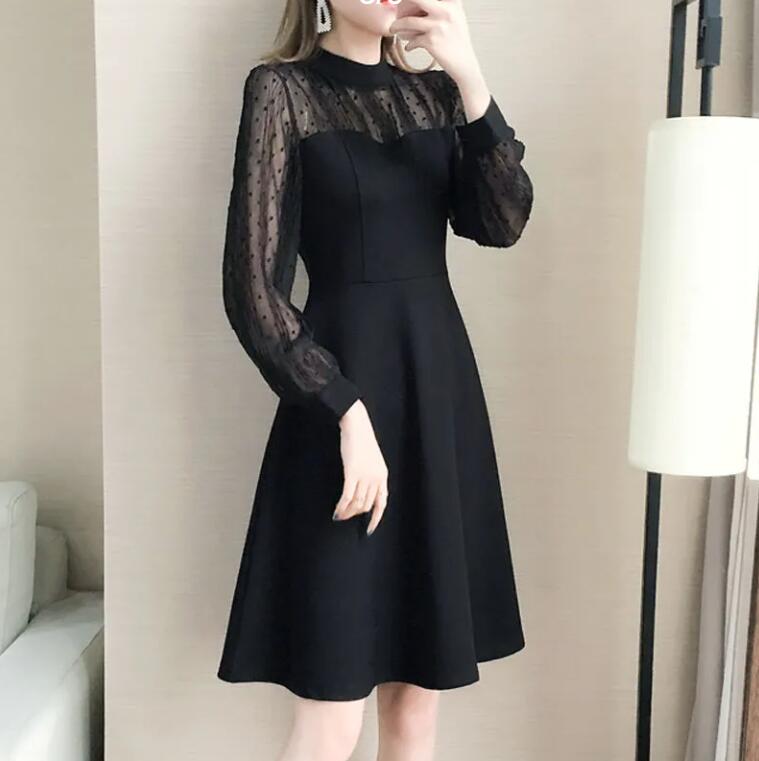 ワンピース レディース ミモレ丈ワンピース シアー 透け ドレス ミディアム丈 レース ミモレ丈 Aライン フレア ワンピ 長袖 大きいサイズ リゾート ドット バンドカラー 大人 カジュアル