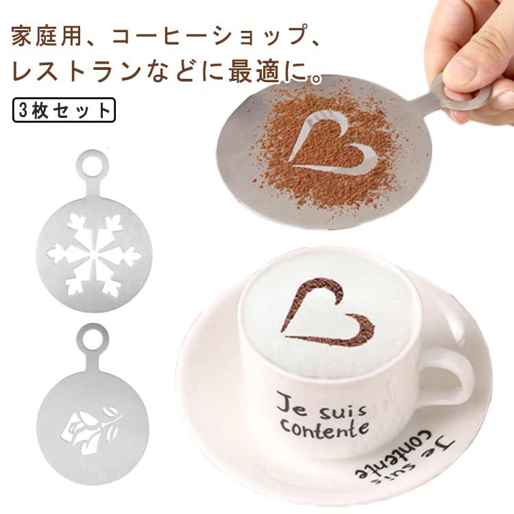3個セット ラテアート ラテアートテンプレート ステンレス コーヒーアート型 バリスタ コーヒー装飾 ケーキ装飾 繰り返し使用 防錆性 DIY お菓子 カプチーノ 耐腐食性