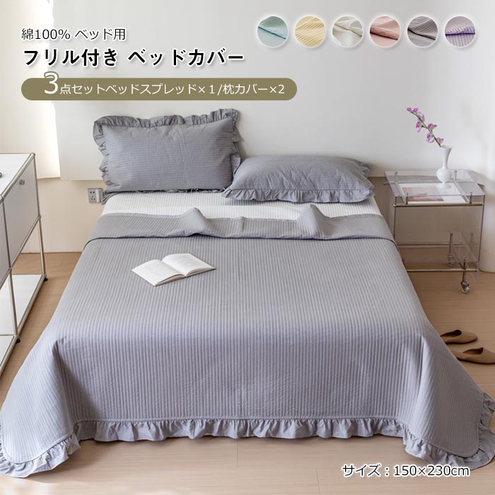 ベッドスプレッド ベッドカバー フリル付き 綿100% 中綿入り ベッドシート ブランケット マルチカバー ソファーカバー 肌に優しい 通気性 洗える おしゃれ 北欧 単品 シンプル 可愛 寝具カバー