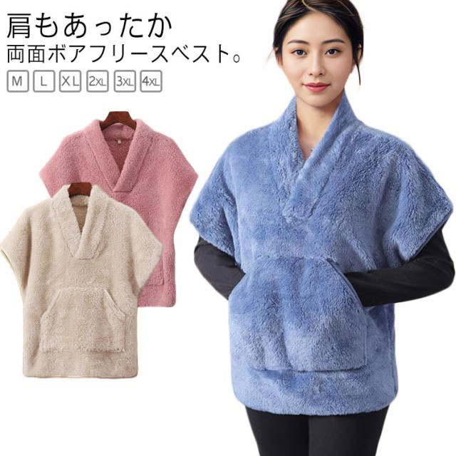 肩当て 着る毛布 ボアベスト レディース 防寒 フリース ルームウェア 秋冬 部屋着 高齢者 大きいサイズ 暖かい