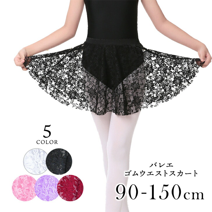 透け感のあるレースが上品 バレエ レース スカート バレエスカート キッズ こども ジュニア ウエア バレエ用スカート レース花柄 総柄 ウエストゴム 着脱簡単 ゴムウエストスカート
