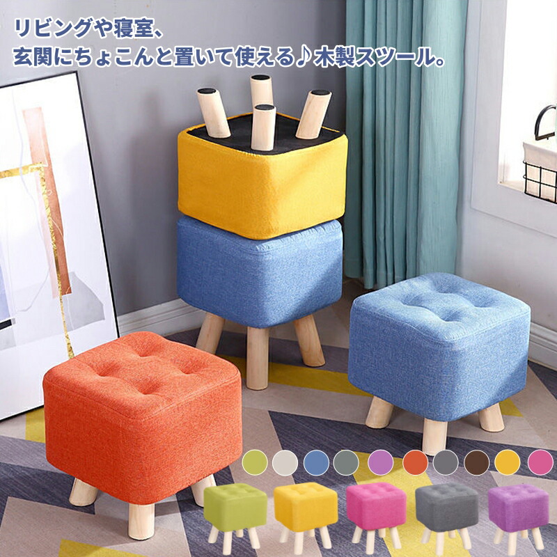 送料無料 スツール 椅子 直立して座る補助 創造性 イス 椅子 チェア 軽量 無垢材の正方形のスツール ファブリック レトロ 小さなベンチ