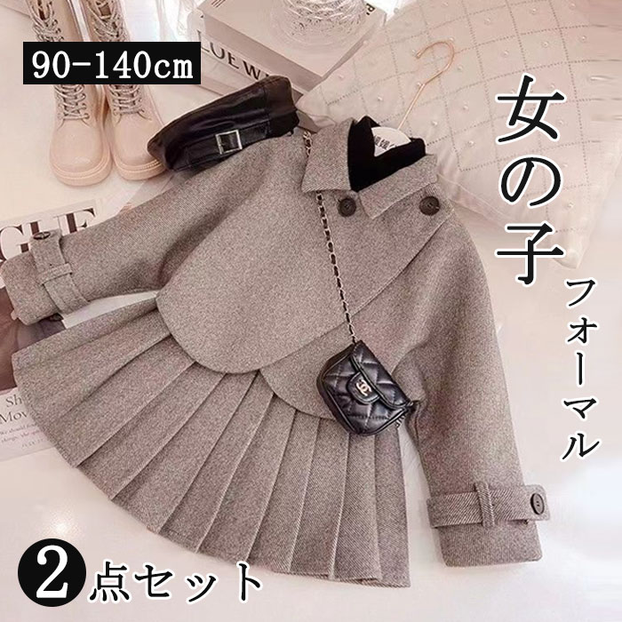 子供 セットアップ スカート ジャケット 2点セット 女の子 ドレス 入学式 プリーツ カジュアル 子供 無地 フォーマル ラシャ ジュニア 子供スーツ キッズ 卒園式 卒業式 オシャレ 子供服