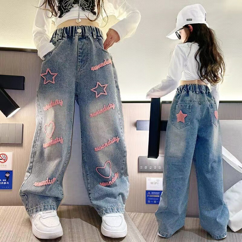 韓国子供服 おしゃれ デニムパンツ 女の子 ワイドパンツ キッズ 無地 冬 子ども 秋冬 子供服 裏起毛 女の子 パンツ 男の子 長ズボン