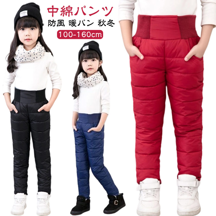 秋冬 中綿パンツ 子供服 防寒パンツ 軽量 キッズ 防風 ゴムウエスト 130 女の子 ジュニア 男の子 フェイクダウン ロングパンツ 暖パン 厚手 防寒 保温 ボトムス あたっか 通学