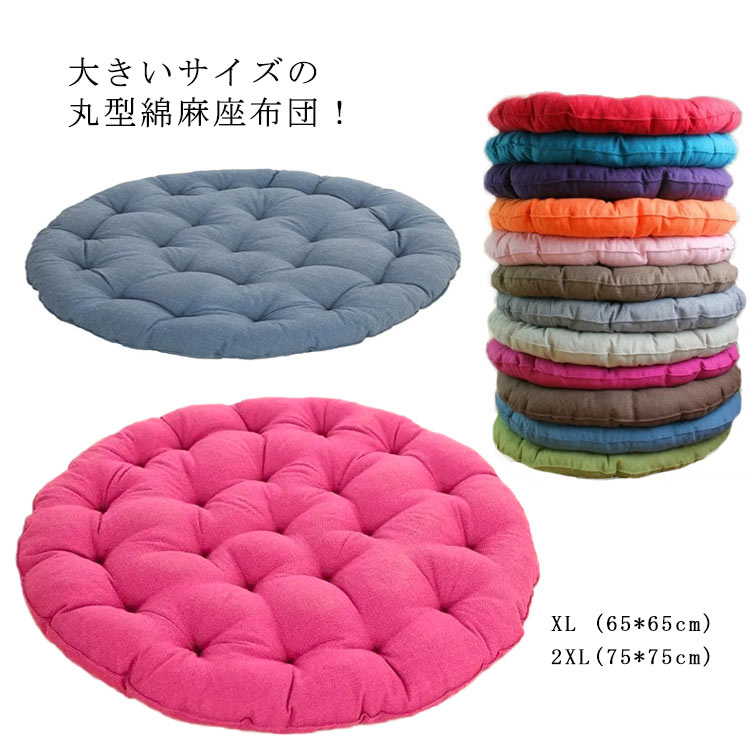 大きいサイズ 座布団 丸型 ヨガ 綿麻 クッション シートクッション たたみクッション チェアパッド リビング座布団 円形 畳 家庭用 車用 椅子用 オフィス用 インテリア 滑り止め シンプル お洒落