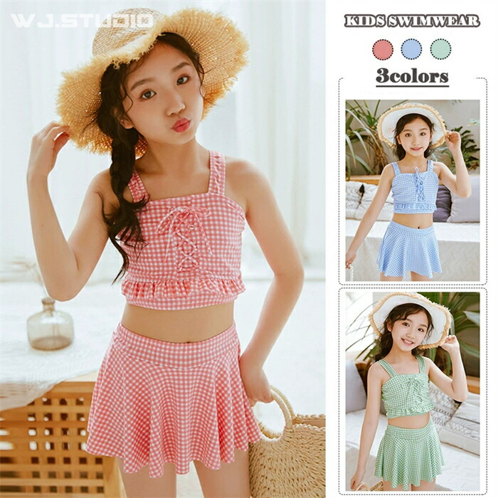 上下セット 女の子 水着 スカート チェック柄 スクール水着 スポーツウエア トップス キッズ セパレート 子供 スイムウェア タンキニ ガールズ 子ども用 中小学 ジュニア