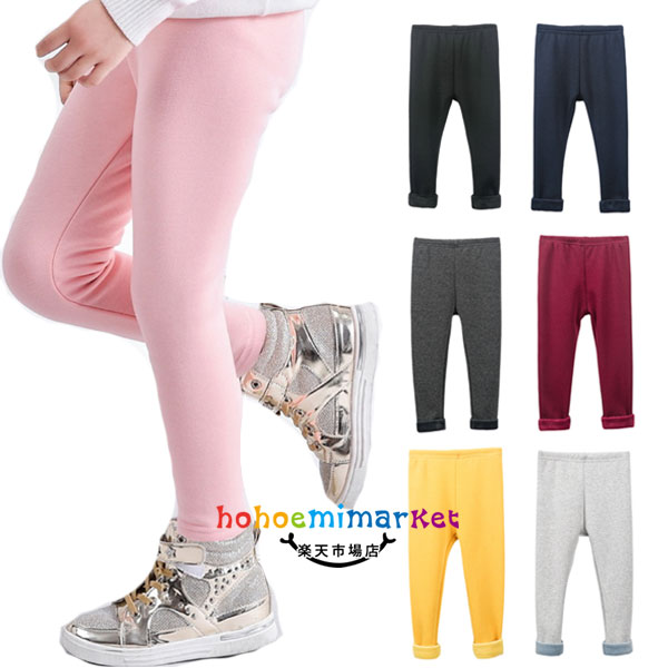 韓国子供服 防寒 裏起毛 レギンス 女の子 ボトムス ズボン パンツ 暖かい ピンク ブラック ネイビー グレージュ レッド イエロー グレー キッズ 無地 オシャレ イ 冬パンツ