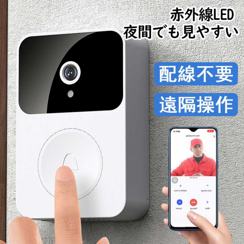ワイヤレス 工事不要 配線不要 電源不要 充電式 ドアホン スマホ 連動 録画 防犯カメラ 機能付き 屋外 通話 小型 暗視 玄関 ドア 玄関チャイム 無線 留守 呼び出しチャイム イン WIFI対応