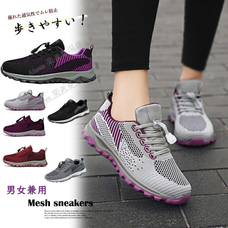 メッシュスニーカー ローカットレディース 厚底スニーカー レディース スニーカー メンズ ブラック 黒 靴 軽量 歩きやすい 疲れにくい 美脚 特別な紐 甲高 幅広 作業靴 衝撃吸収 スリッ 姿勢矯正