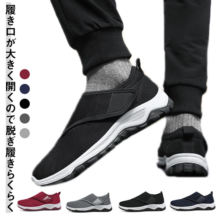 スニーカー スリッポン 軽量 ベルクロ マジックテープ メッシュ ローカット ウォーキングシューズ リハビリシューズ