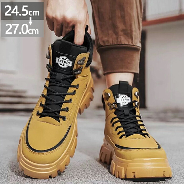 メンズ ハイカット 靴 レザーブーツ 厚底スニーカー 3cm 快適 カジュアルシューズ 紳士靴 ワークブーツ 防水 メンズブーツ スニーカー アウトドアブーツ 滑り止め 耐磨耗性 通気性よい 登山
