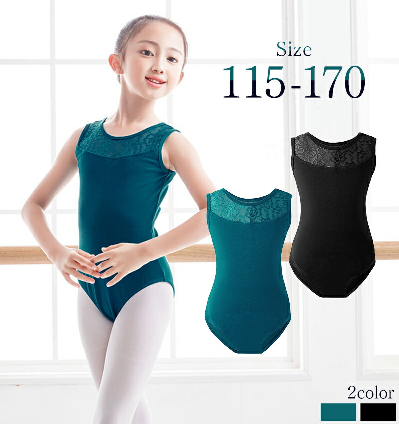 切り替えレースが上品なデザイン バックスタイルまでおしゃれに バレエレオタード 背中あき ディープカラー 子ども用 女性用 グリーン ブラック 緑 黒 120 130 140 150 160 170