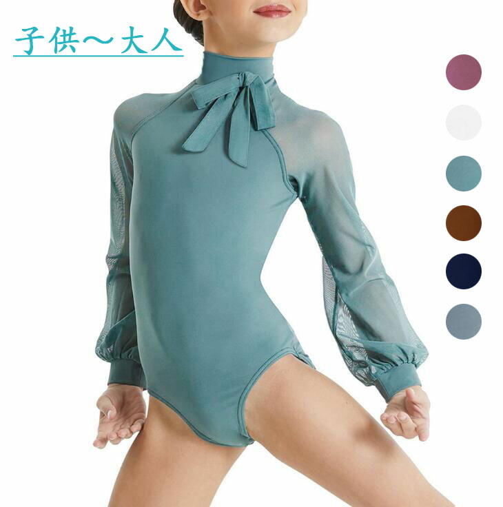 バレエ レオタード レース長袖レオタード ハイネック レオタード バレエダンス 社交ダンス 新体操 ラテンダンス ストレッチ バレエ用品 レッスン着 舞台演出服 子供~大人 リボン結べ