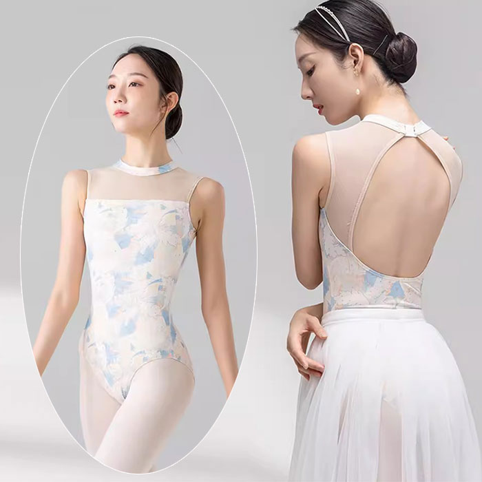 バレエ レオタード 大人 ノースリーブ ストレッチメッシュ シースルー 葉柄 おしゃれ バレエレオタード レディース ジュニア スカートなし 背中開き エレガント 上品 練習 レ かわいい
