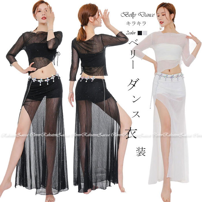 ベリーダンス 衣装 セット レッスン着 セットアップ チュール ヒップスカーフ スカート ストレッチ 生地 トップス 星屑 キラキラ おしゃれ ベリー ダンス衣装 ダンス 発表会 上下セ ステージ衣装