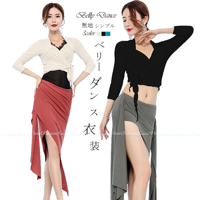 ベリーダンス レッスン着 女性 大人 ベリー ダンス衣装 へそ出し モダールシャツ チュールスカート スリット入り ベリースカート 見せパン付き ベリーダンス 演出服 練功服 練習着
