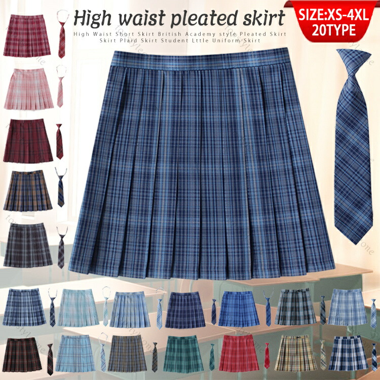 制服 学生制服スカート チェック柄 プリーツスカートネクタイ付き 女子高生スカート レディース 高校生 お受験 結婚式 発表会 フォーマル なんちゃって制服 着丈選択可能 ジュニア