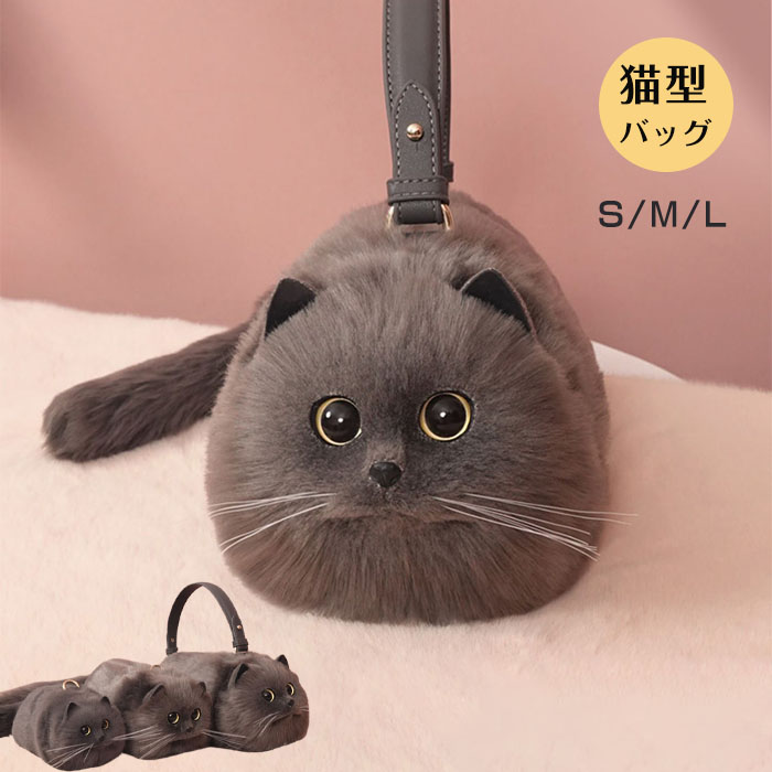 猫ちゃん型バッグ ショルダーバッグ 猫型 バッグ ハンドバッグ レディース 猫 鞄 カバン 雑貨 ぬいぐるみ ファー リアル ふわふわ 猫好き サブバッグ 可愛い ポ ミニバッグ