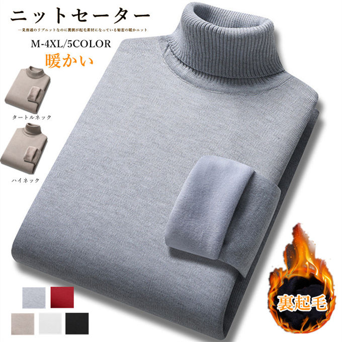セーター ニット メンズ タートルネック 裏起毛 ニットセーター 無地 裏ボア 定番 防寒 厚手 あったか 暖かい 細身 紳士服 冬服 大きいサイズ M~4XL ハイネック 長袖 全5色 トップス